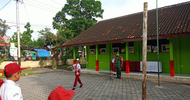 KLATEN — Babinsa Desa Jonggrangan, Koramil 24/Klaten Utara Kodim 0723/Klaten, Sertu Budi Mulyono, melaksanakan tugas sebagai pembina upacara bendera di SDN 2 Jonggrangan, Kecamatan Klaten Utara Kabupaten Klaten, Senin (17/11/2025). Kegiatan tersebut diikuti oleh seluruh dewan guru dan siswa-siswi sebagai bagian dari upaya pembinaan disiplin serta penanaman wawasan kebangsaan sejak dini.
