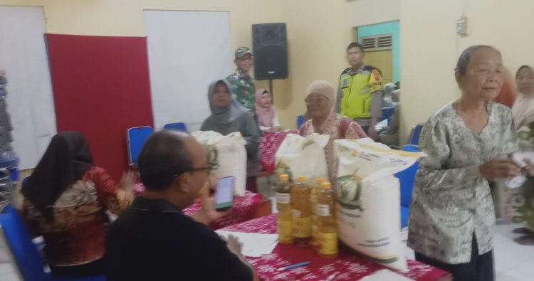 KLATEN – Bertempat di Aula Balai Desa Tugu Kecamatan Cawas Kabupaten Klaten, Babinsa Desa Tugu Koramil 20/Cawas Kodim 0723/Klaten, Serda Purwanto melaksanakan pengamanan kegiatan penyaluran Bantuan Pangan dari Kementerian Sosial Republik Indonesia, Senin (15/12/2025).