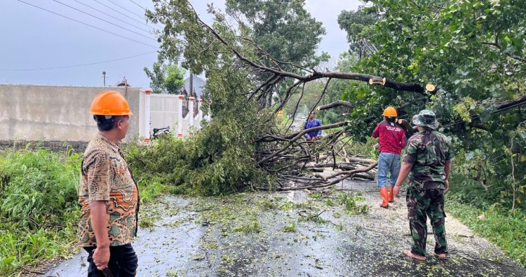 Di Kecamatan Wonosari, hujan angin mengakibatkan pohon tumbang serta putusnya jaringan listrik sehingga beberapa titik mengalami gangguan pasokan listrik. Babinsa Koramil 22/Wonosari melakukan koordinasi dengan aparat terkait untuk memastikan pengamanan lokasi serta membantu penanganan awal guna mencegah risiko lanjutan.