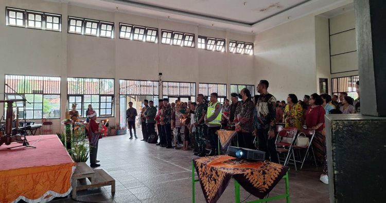KLATEN — Danramil 20/Cawas Kodim 0723/Klaten, Kapten Inf Sukimanto bersama unsur Forum Koordinasi Pimpinan Kecamatan (Forkopimcam) Cawas menghadiri Perayaan Natal Tahun 2025 Jemaat Gereja Kristen Jawa (GKJ) Desa Barepan, Kecamatan Cawas Kabupaten Klaten. Kegiatan tersebut dilaksanakan di Gedung Serbaguna SKB Desa Barepan dan diikuti sekitar 300 jemaat, berlangsung dengan aman, tertib, dan penuh khidmat. (25/12/2025)