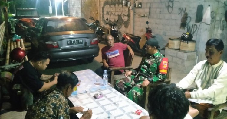 KLATEN – Babinsa Desa Jimbung, Koramil 01/Kota Kodim 0723/Klaten, Sertu Hartono melaksanakan kegiatan komunikasi sosial (Komsos) dengan menyambangi warga binaan di RW 27, Dukuh Banyuripan Desa Jimbung Kecamatan Kalikotes Kabupaten Klaten. Minggu Malam (7/12/2025)
