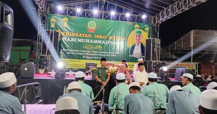 KLATEN – Danramil 19/Trucuk Kodim 0723/Klaten, Kapten Inf Widoyo menghadiri Pengajian Akbar dalam rangka peringatan Isra’ Mi'raj Nabi Besar Muhammad SAW yang digelar di Joglo Karyo Utomo, Dukuh Samber Desa Sabranglor Kecamatan Trucuk Kabupaten Klaten, pada Senin Malam (05/01/2026).